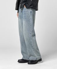 빈티지 바이오 캣워싱 와이드 데님 팬츠 [샌드 블루]