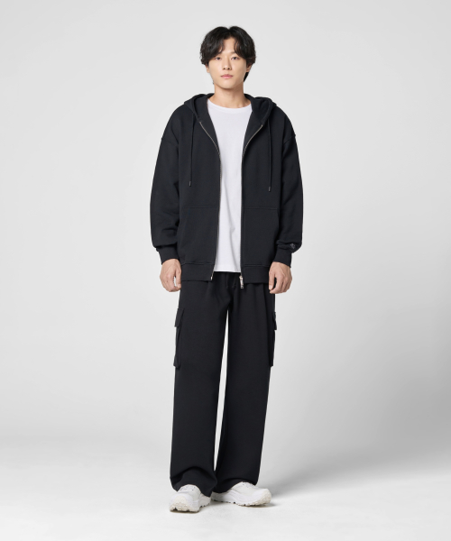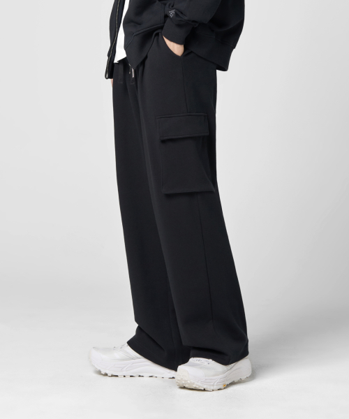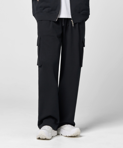 원턱 카고 스웨트 팬츠 [블랙]
