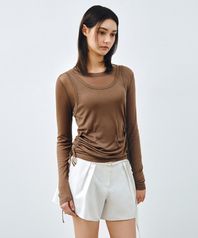 [SET] 사이드 셔링 레이어드 티셔츠 모카브라운 MDTS067MOCHABROWN