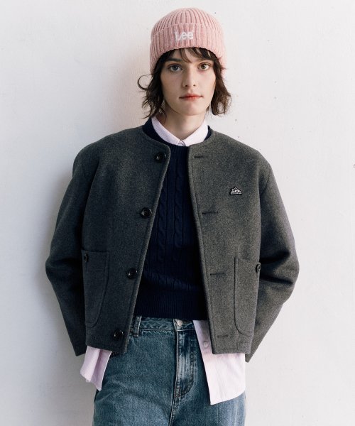 우먼 울혼방 라운드넥 숏 코트 차콜
