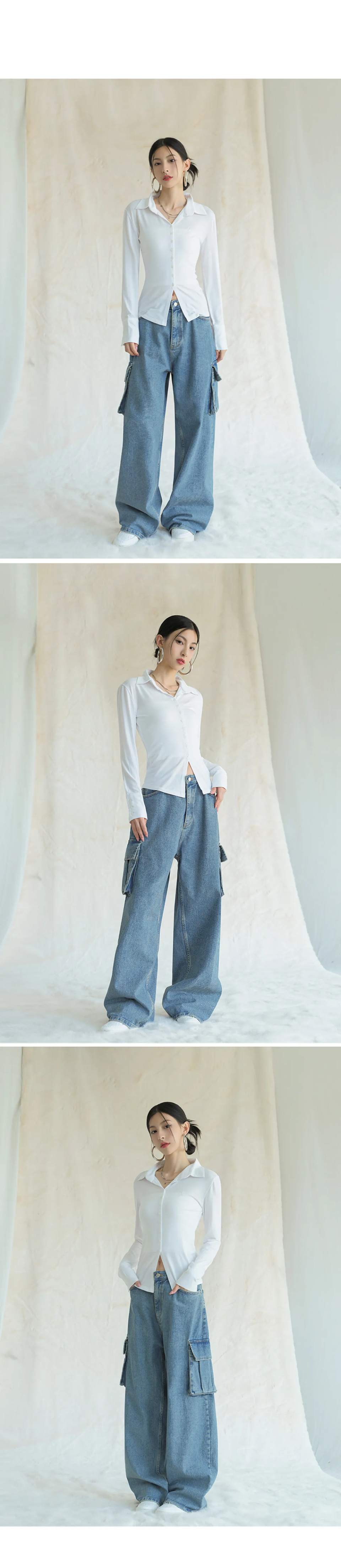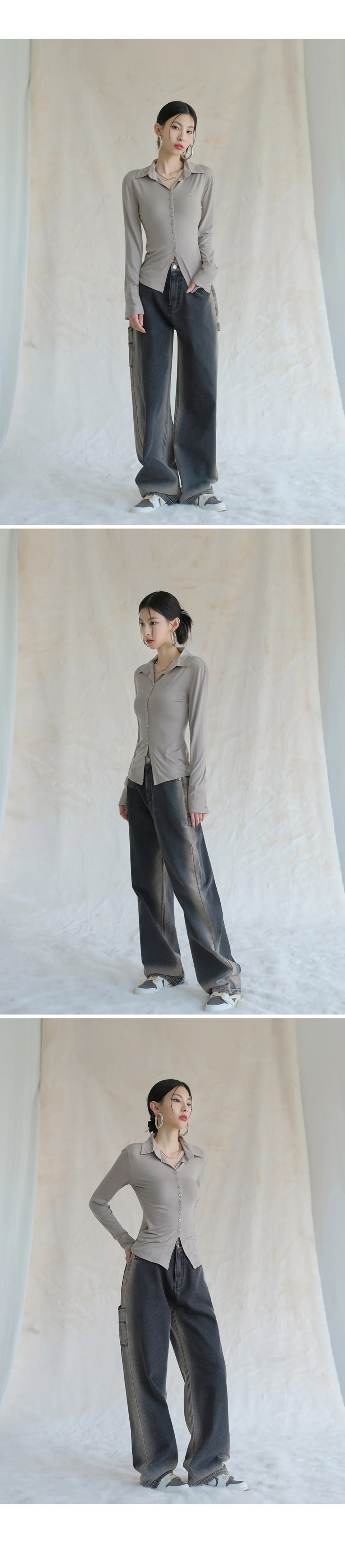 우먼즈 핀 스트라이프 딥 턱 와이드 슬랙스 [그레이]
