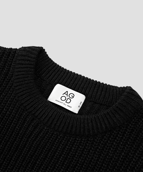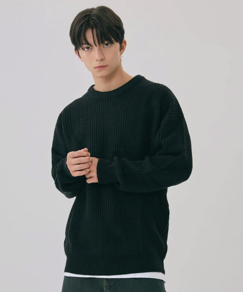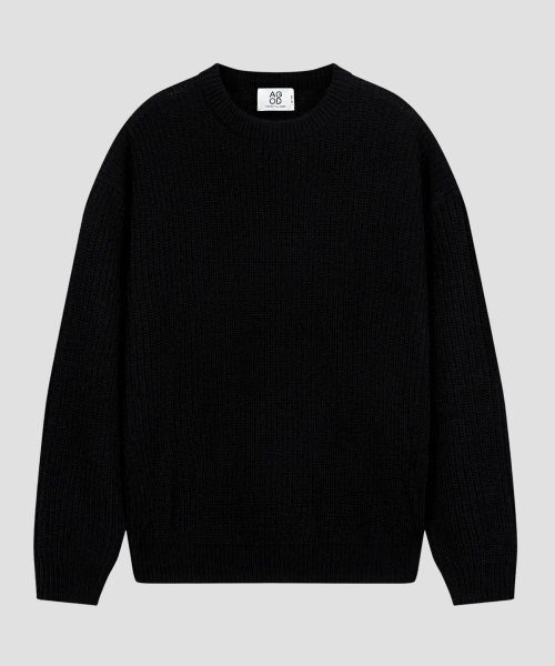 크루넥 리브 오버핏 하찌 니트 [블랙]