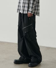 폴리시드 멀티 와이드 카고 팬츠 [블랙]