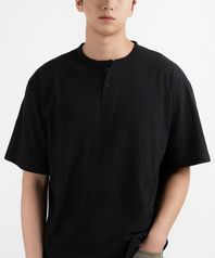 오버핏 슬라브 헨리넥 반팔 티셔츠 블랙