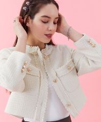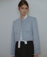 [CP] 크롭 라운드 트위드 블레이저 자켓 [IVORY] 골드버튼 ver.