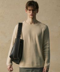 프렌치 오버사이즈 래글런 리브드 코튼 니트 BEIGE
