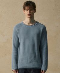 프렌치 오버사이즈 래글런 리브드 코튼 니트 BABY BLUE