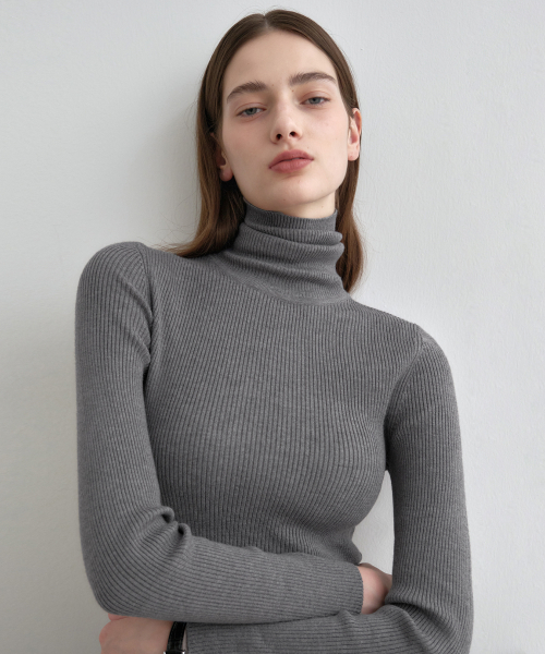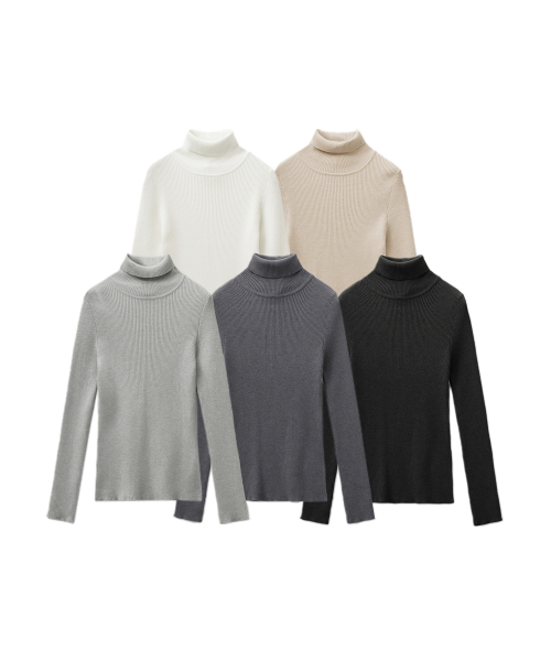 터틀넥 슬릿 골지 니트 MDKT061_5 Colors