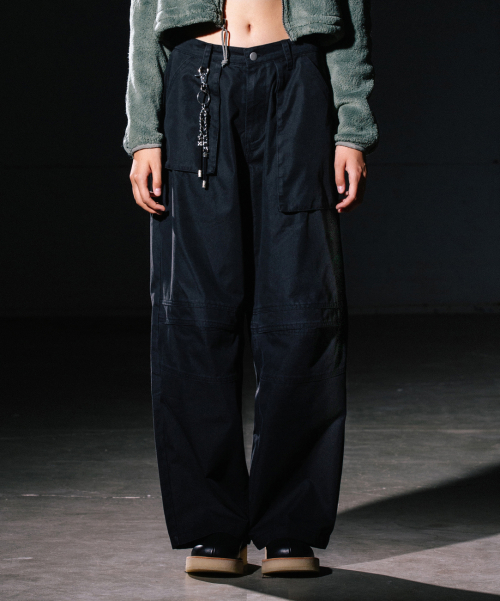 사이드 빅 카고 디링 코팅 워시드 팬츠 블랙