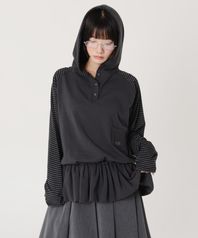 스트라이프 벌룬 스커트 레이어드 후디 (차콜)