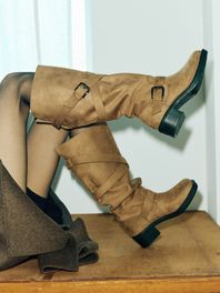 [탈부착 버클] 2Colors_3way 볼드 라운드 토우 버클 바이커 스웨이드 롱 부츠 l KM426-S