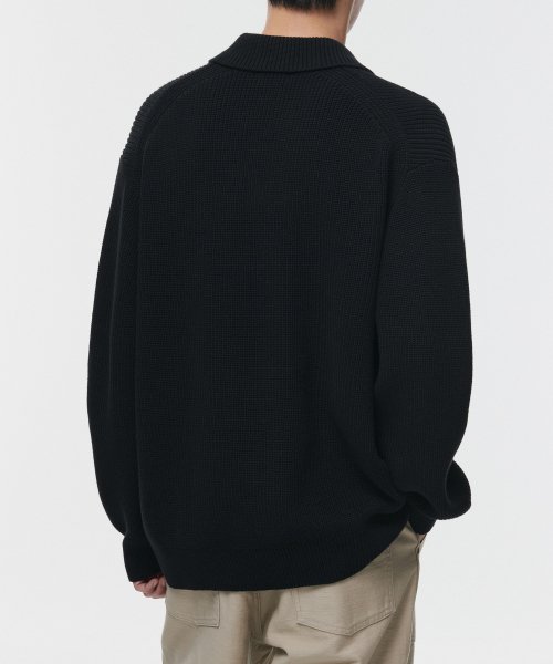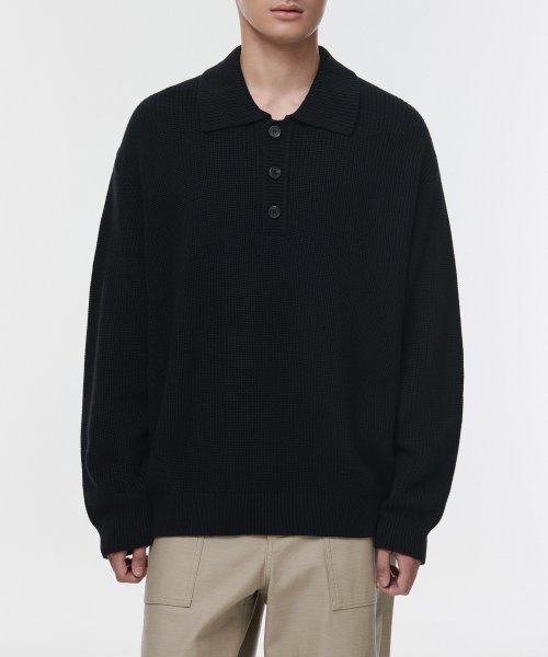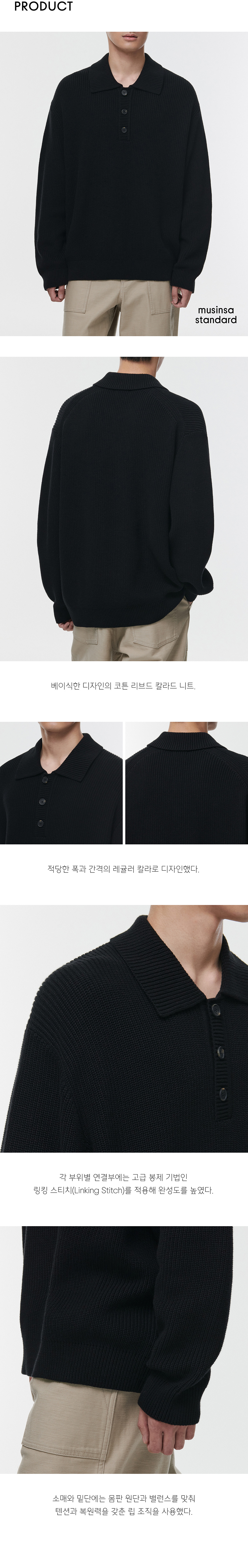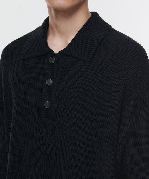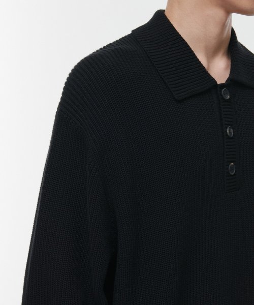 코튼 리브드 칼라드 니트 [블랙]