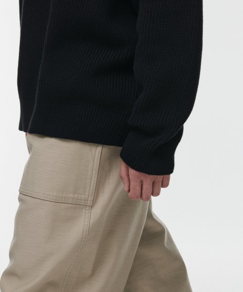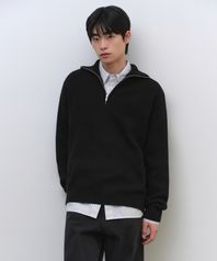 릴렉스드 리브드 하프 집업 니트 [블랙]