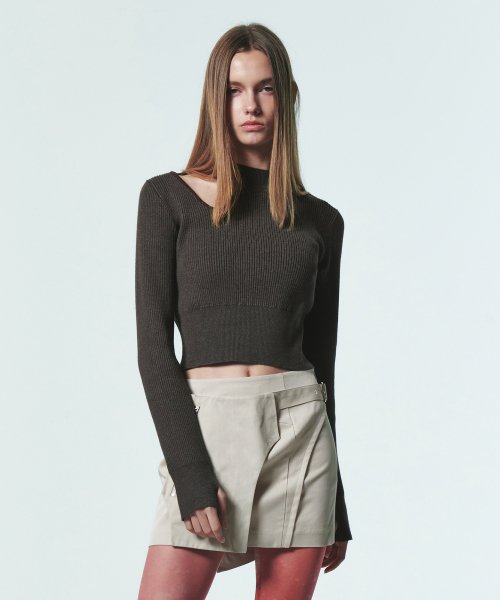 CUT OUT DETAIL KNIT TOP [DARK BROWN]
