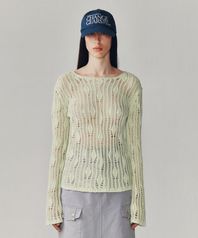 BOAT NECK SHEER KNIT TOP [LIGHT GREEN]