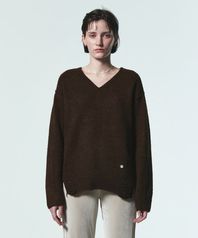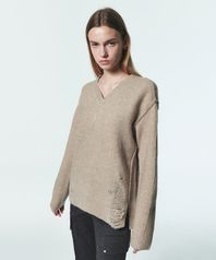 DAMAGE V NECK KNIT TOP [OATMEAL]
