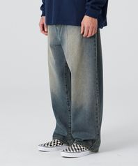 더티 워싱 와이드 데님 팬츠 빈티지 블루