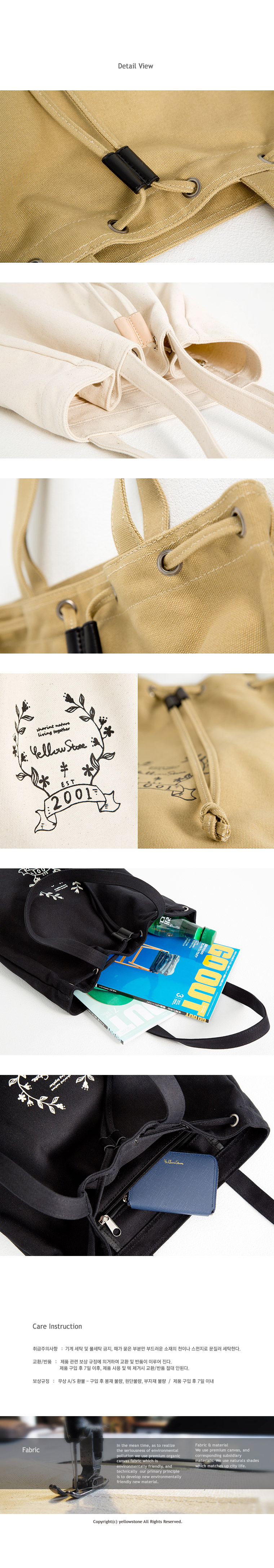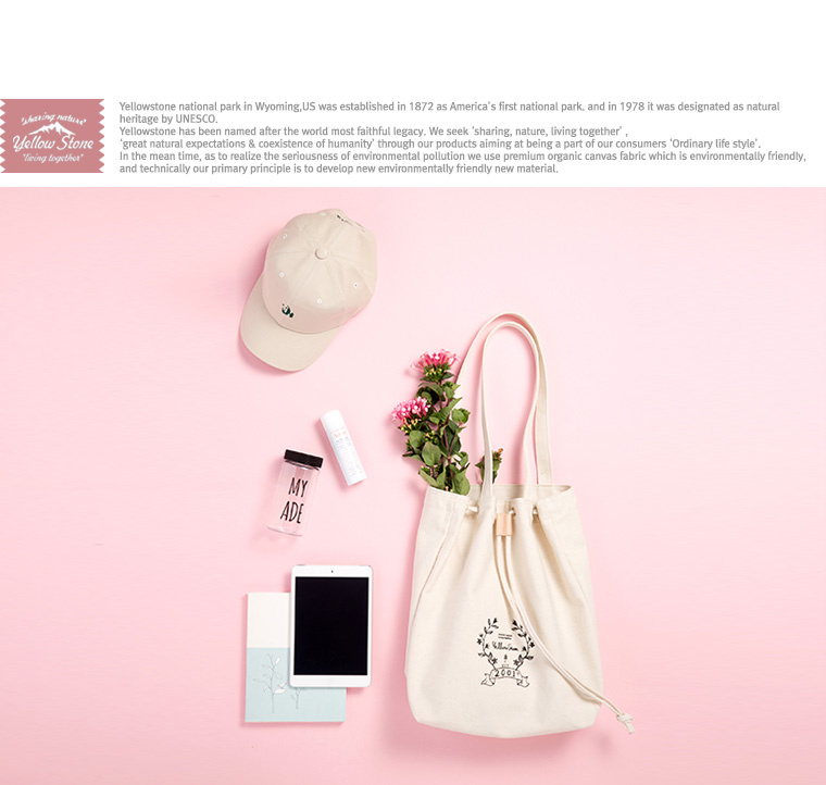 YELLOWSTONE(옐로우스톤)은 1892년, 미국 최초 국립공언으로 지정, 1978년 유네스코 자연유산으로 지정된 와이오밍 주에 속한 Yellowstone의 명칭으로부터 명명되었스며, '위대한 자연과 인간의 공존'이라는 의미를 부여한 , 'Sharing Nature, Living Together'라는 슬로건 아래, '네이처,어드벤처,빈티지;라는 테마와 함께 'Ordinary Life Style'을 지향합니다. 그리고 동시에 자연 환경 보존, 환경 오염에 심각성을 널리 알리고 개선하는데 동참하고자 친환경 최상금 Organic Canvas Fabric 중심으로 가급적 자연에 유해되지 않는 소재를 개발 및 사용하여 가방을 생산하고 있으며, 현재에도 그리고 앞으로도 늘 신소재 개발에 주안을 둘 것입니다.