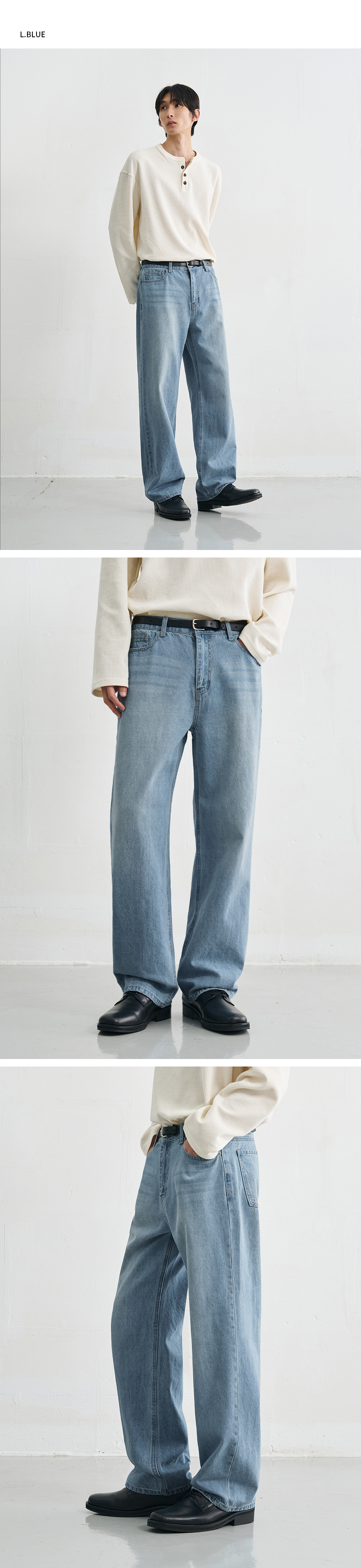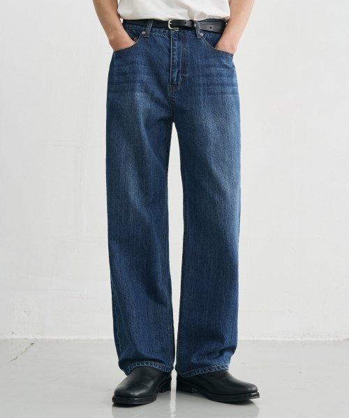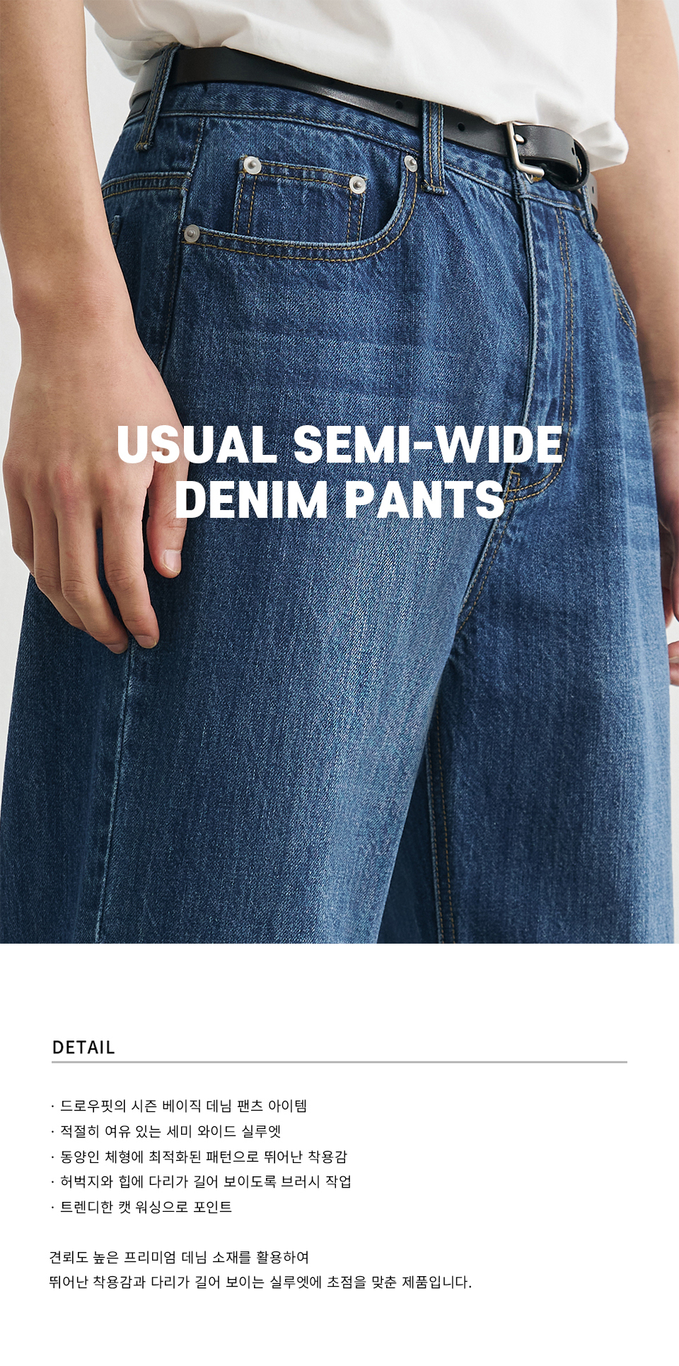 유주얼 세미 와이드 데님 팬츠 [BLUE]