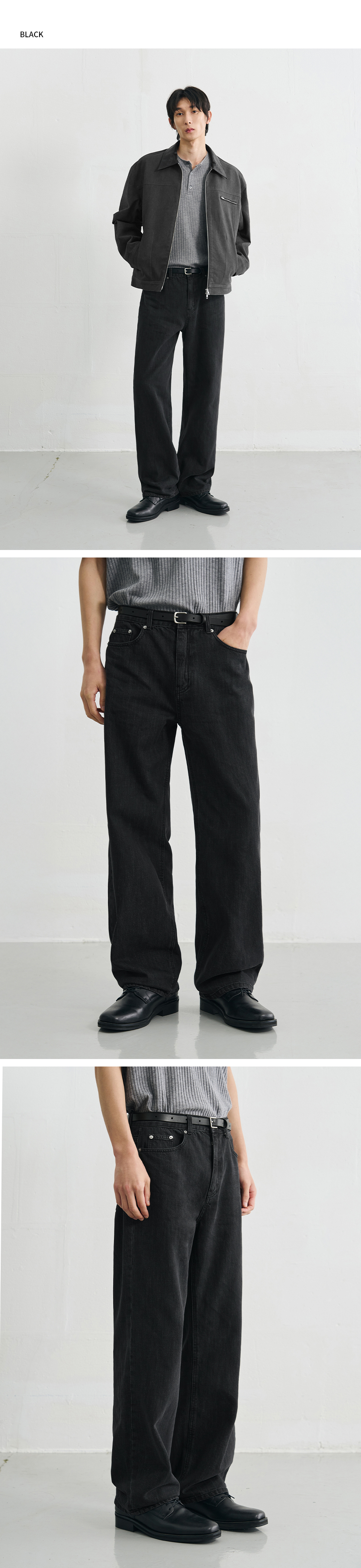 유주얼 세미 와이드 데님 팬츠 [BLACK]