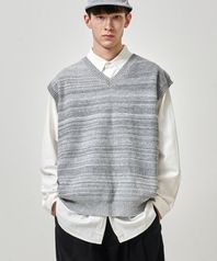 투톤 배색 니트 베스트 그레이