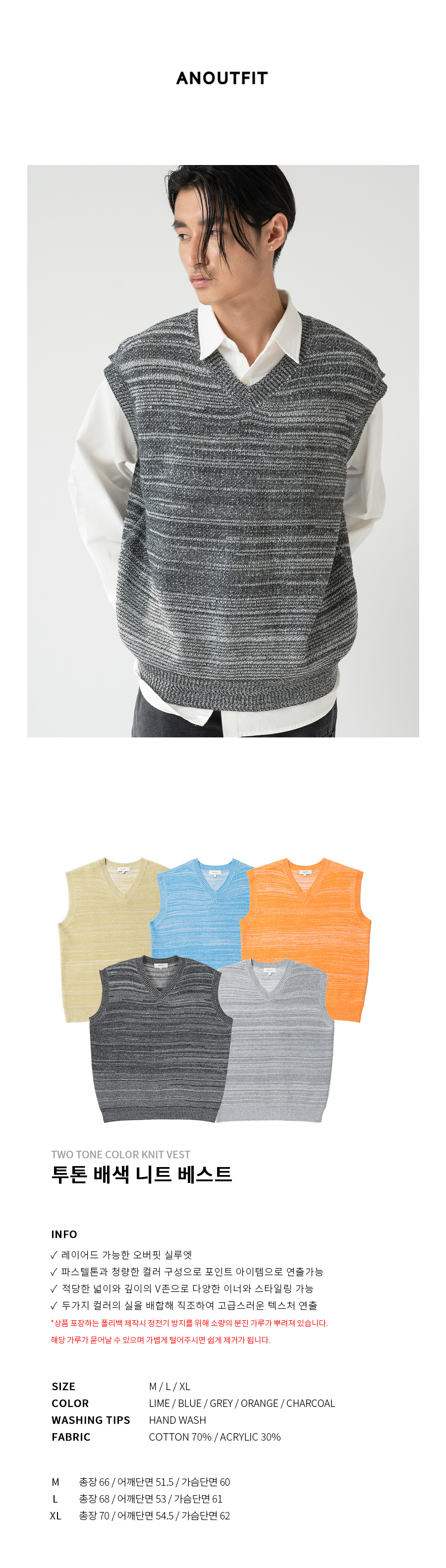 투톤 배색 니트 베스트 차콜