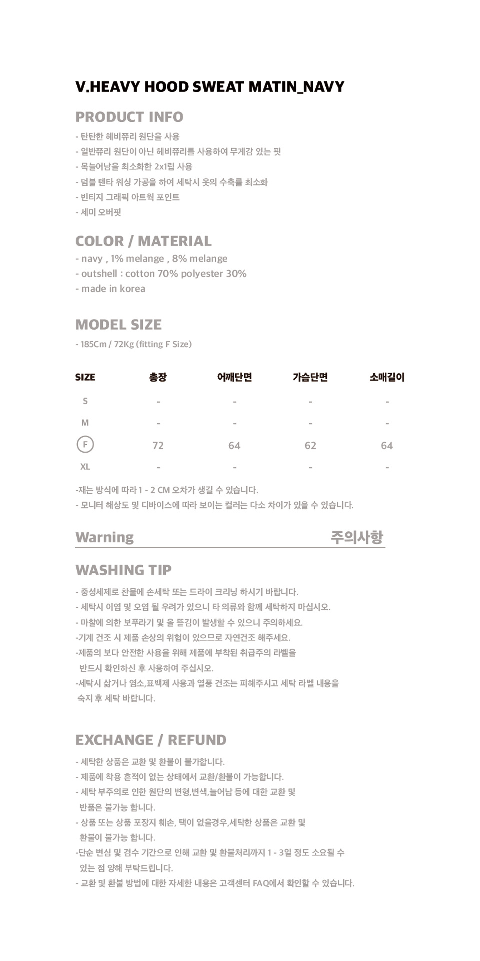 V.HEAVY HOOD SWEAT MATIN_NAVY