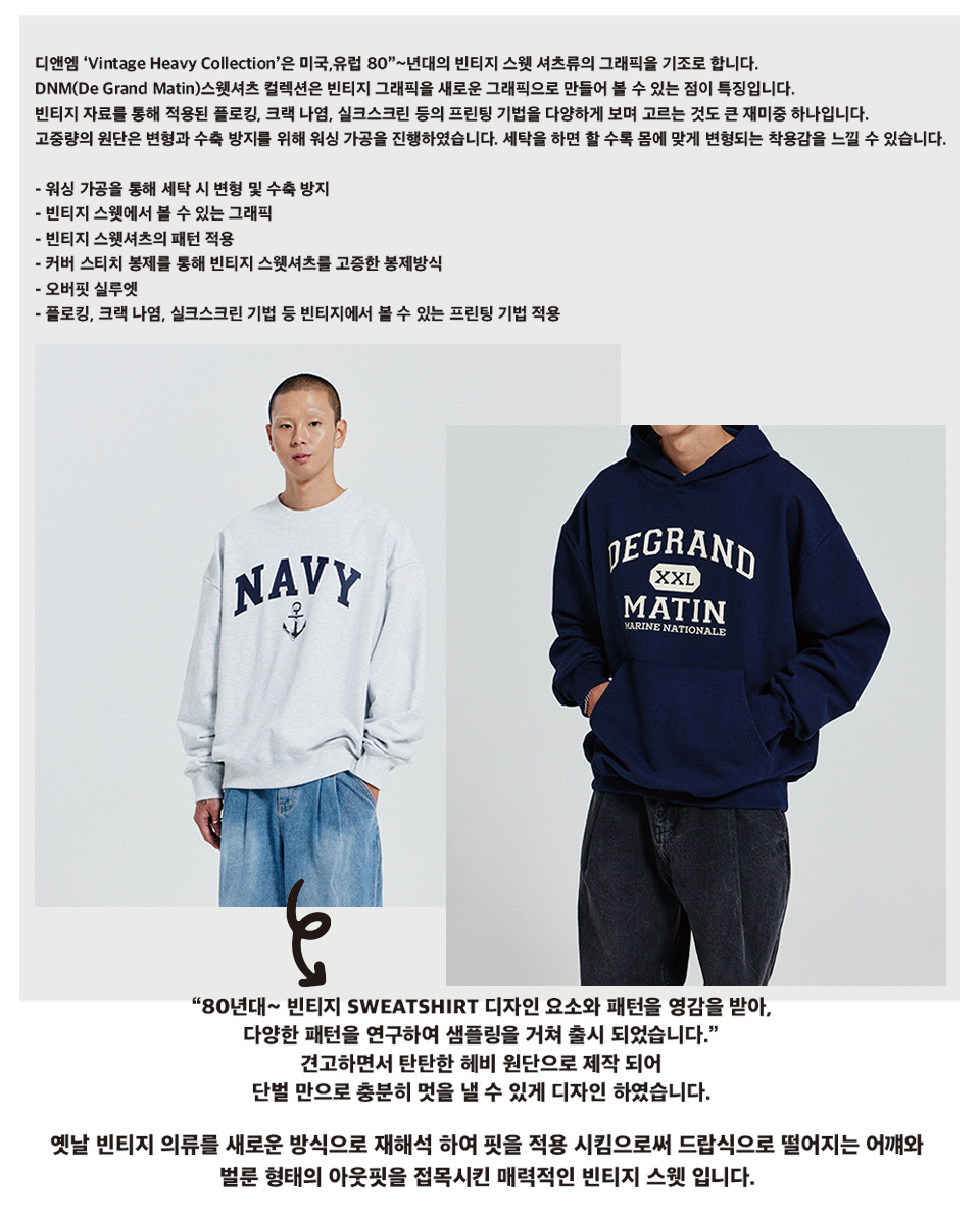 디 그랜드 마틴(DE GRAND MATIN)은 아메리칸 감성의 캐주얼 스타일에 가치를 두고 전개하는 브랜드입니다. 다양성을 지향하며, 브랜드만의 현대적인 감성으로 재해석한 의류를 높은 퀄리티와 합리적인 가격으로 선보여 오래도록 함께 소통하고자 합니다.