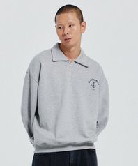 V.HEAVY HALF ZIP-UP SWEAT LOGO_MELANGE GRAY