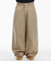 와이드 커브드 다트 코튼 팬츠[베이지]