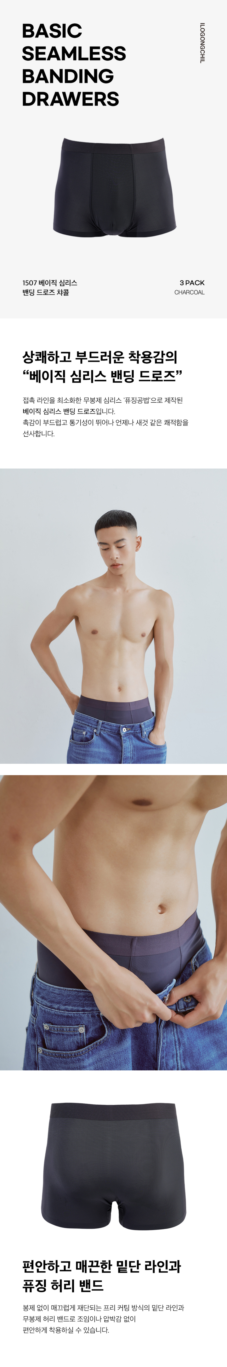 [3PACK] 1507 베이직 심리스 밴딩 드로즈 - 챠콜