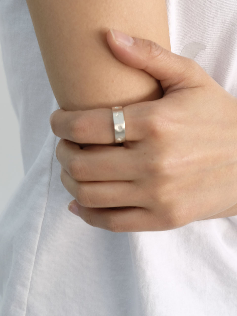 주얼리용으로 적합한 925실버를 사용했습니다. 키마우라의 로고를 활용하여 디자인한 반지입니다. 매트하고 깔끔한 질감을 내기 위해 무광 처리로 마무리했습니다.