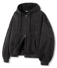 빈티지 스터드 피그먼트 2WAY 후드 집업_차콜