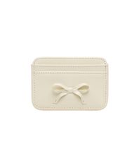 리본 파이핑 소가죽 카드지갑 크림
