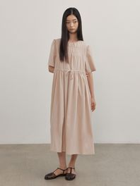 숏 슬리브 셔링 로맨틱 롱 원피스_핑크