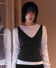 ANGORA V NECK SLEEVELESS (CHARCOAL)