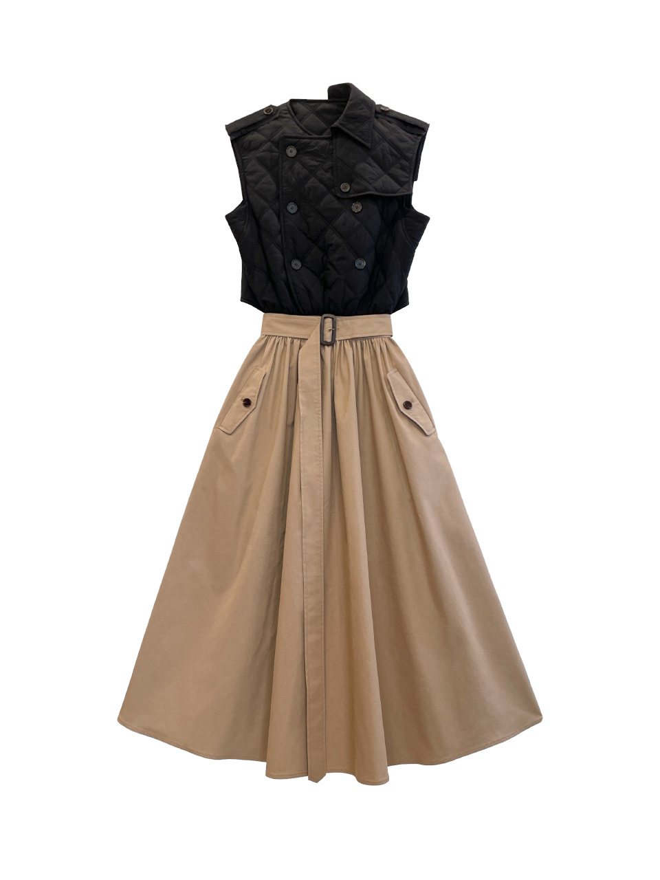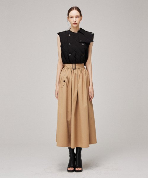 시그니처 슬리브리스 퀼팅 트렌치 코트 드레스 입니다.