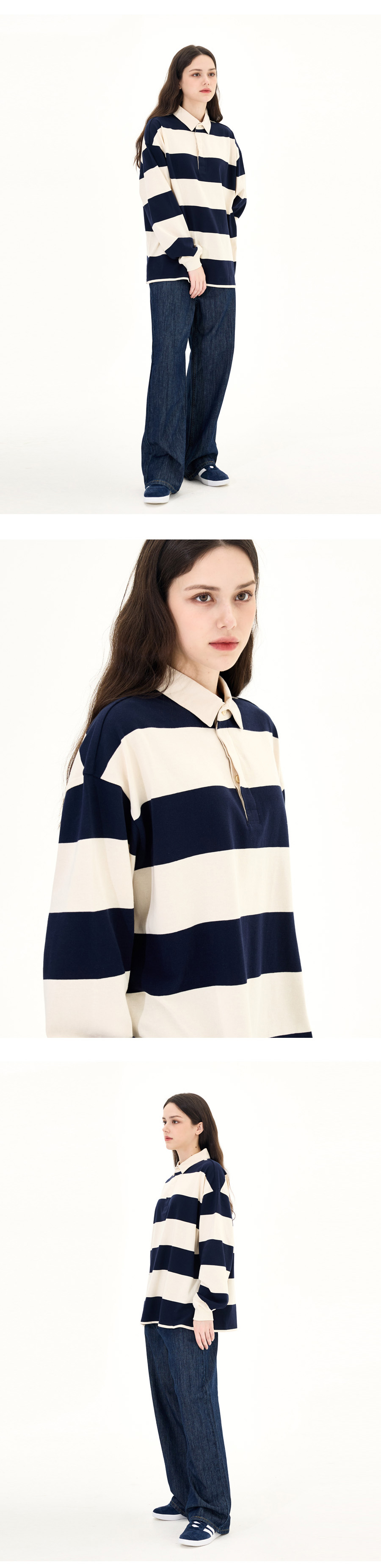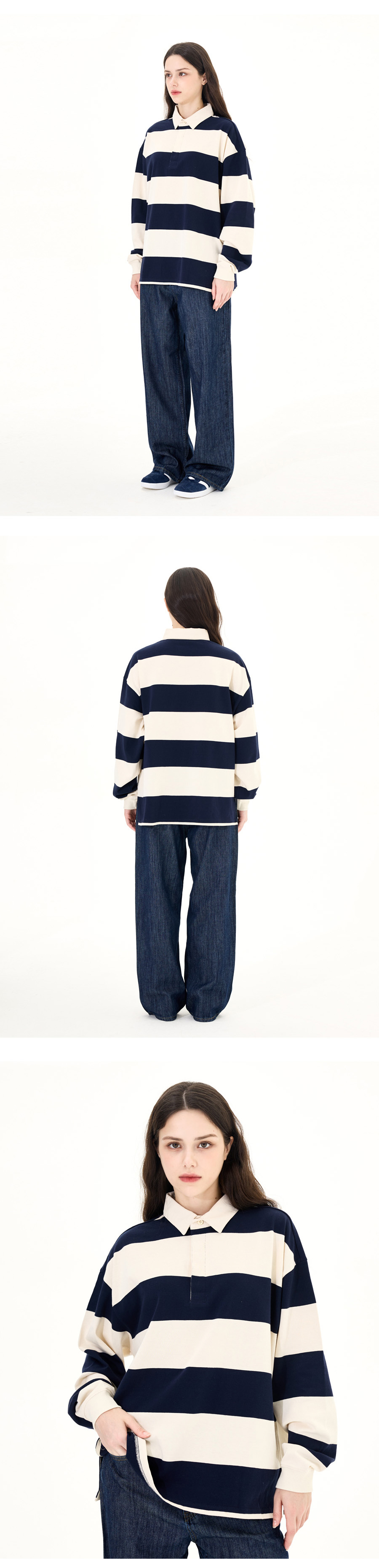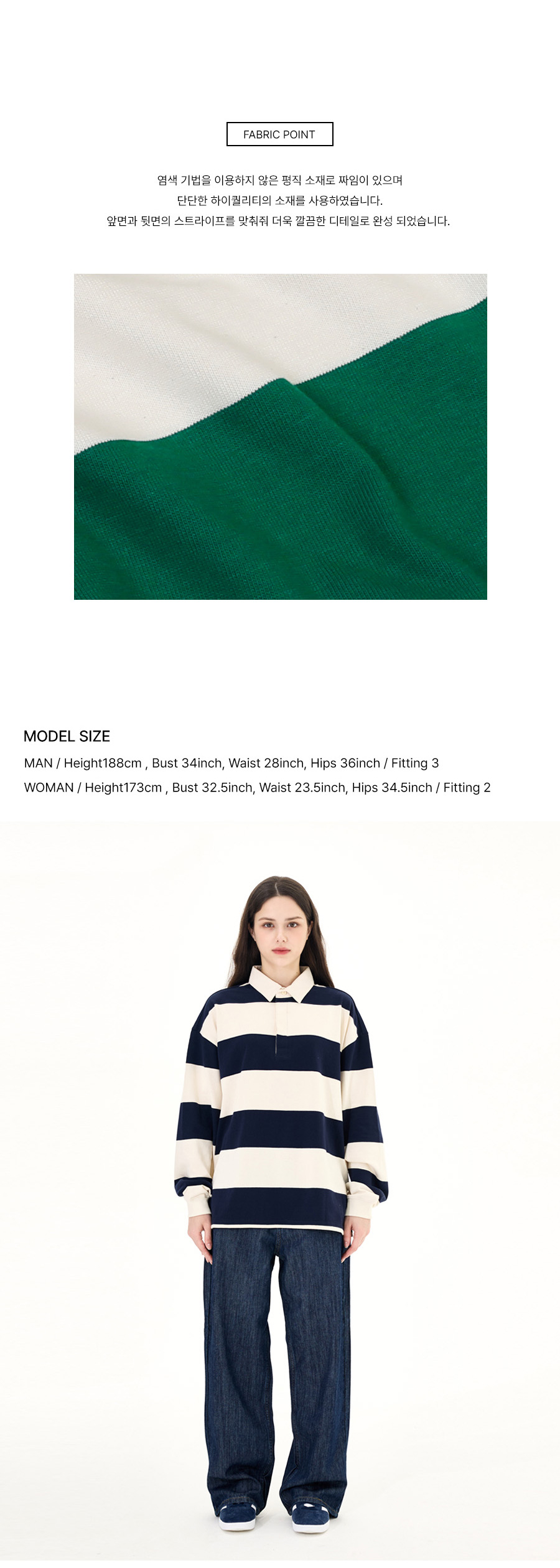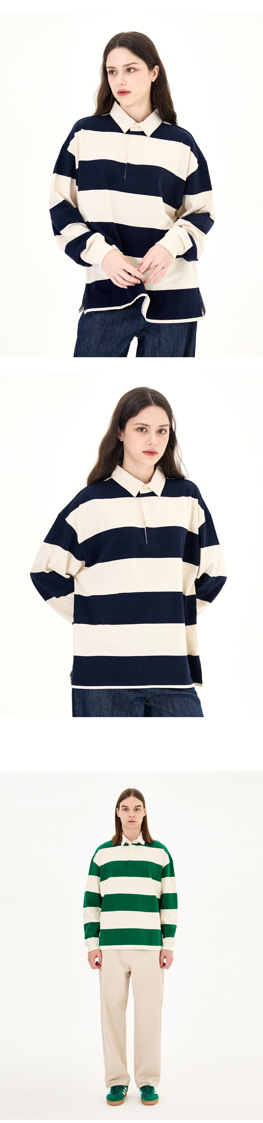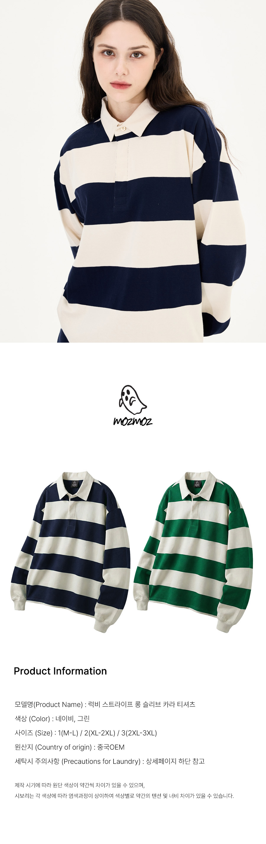럭비 스트라이프 롱 슬리브 카라 티셔츠 그린