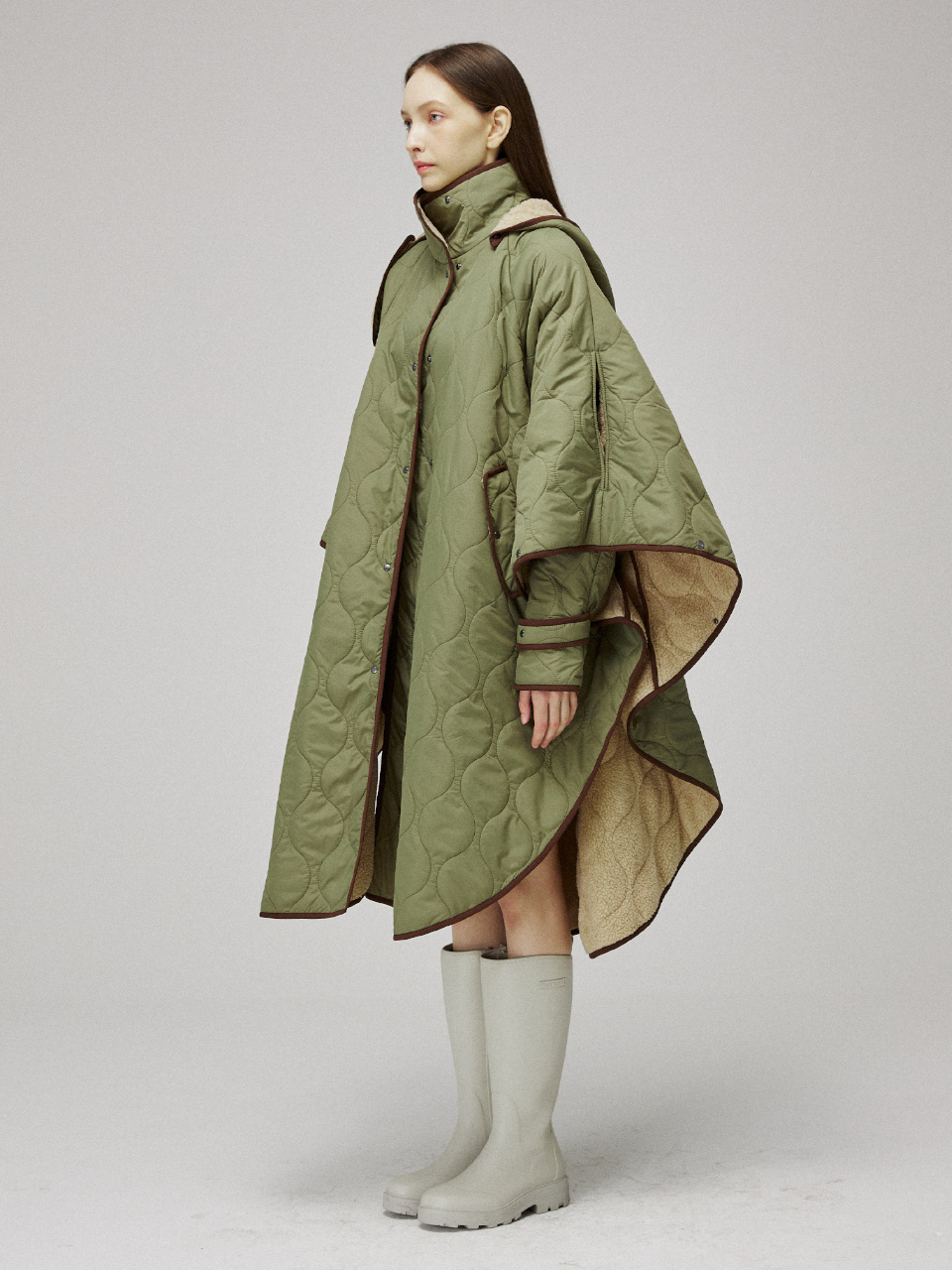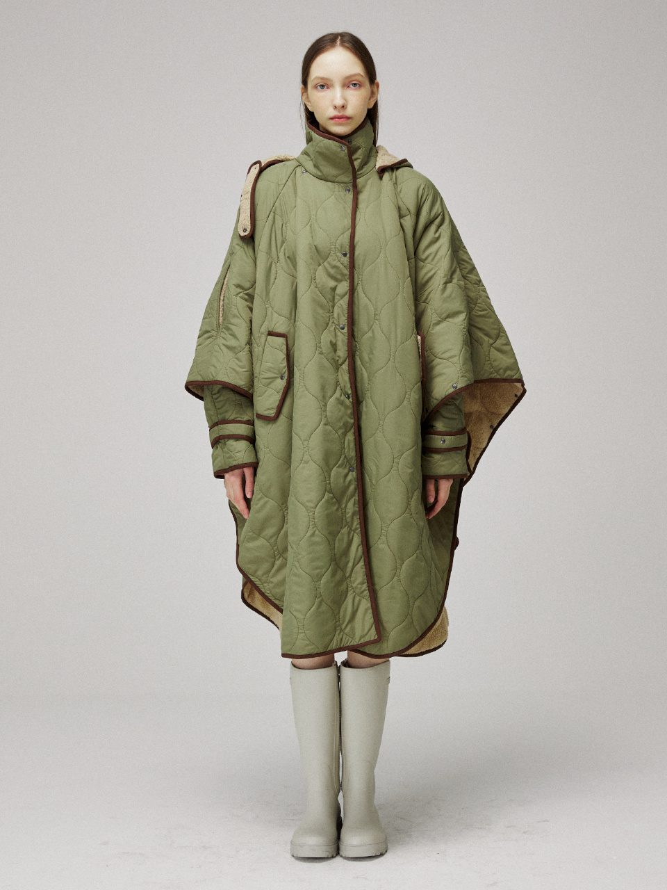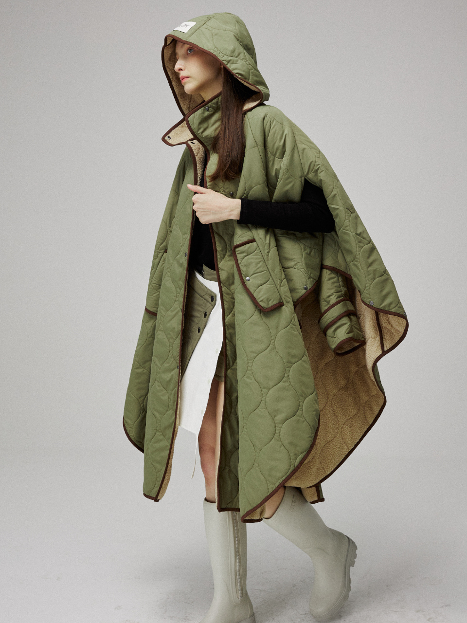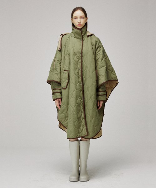 퀼팅 케이프 후드 코트입니다.