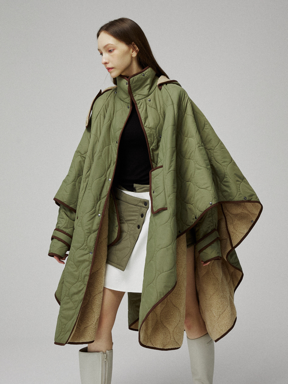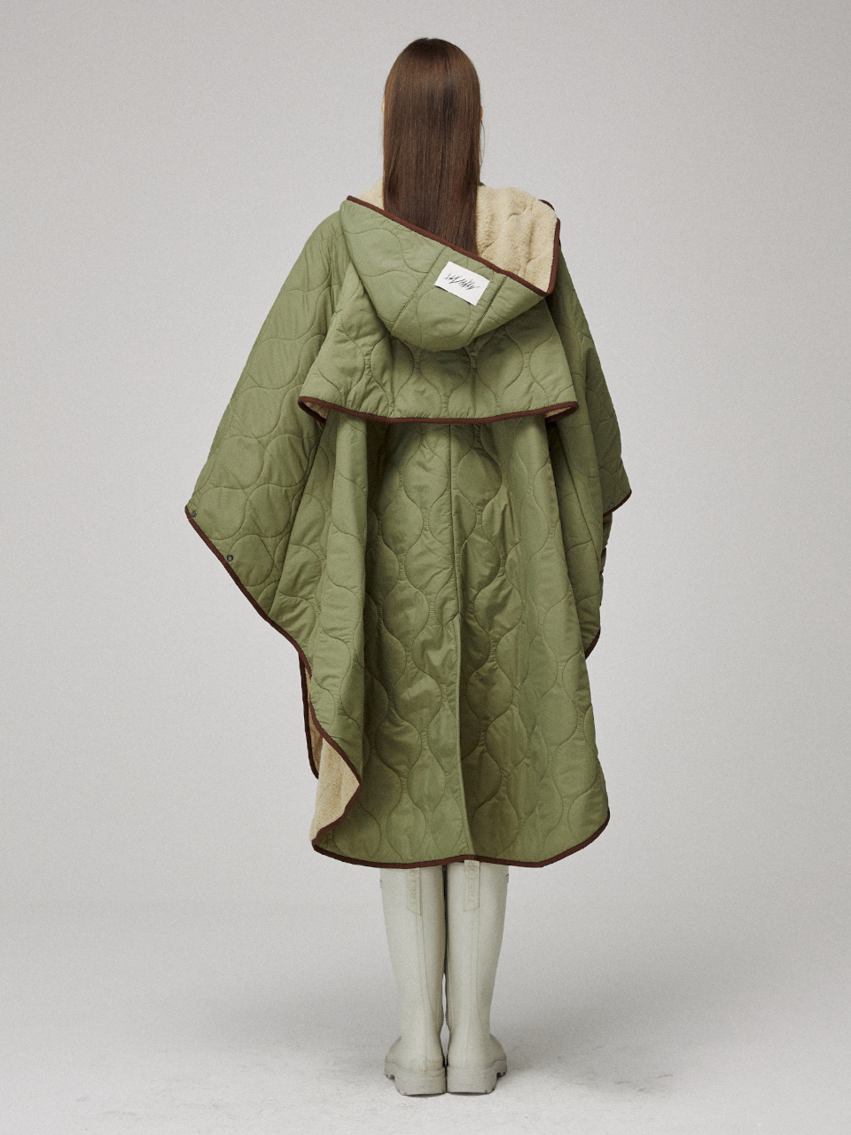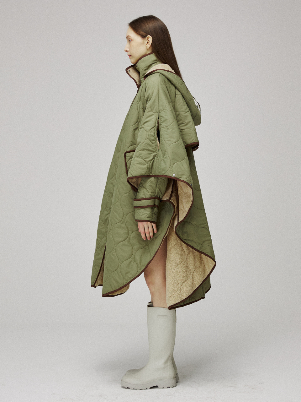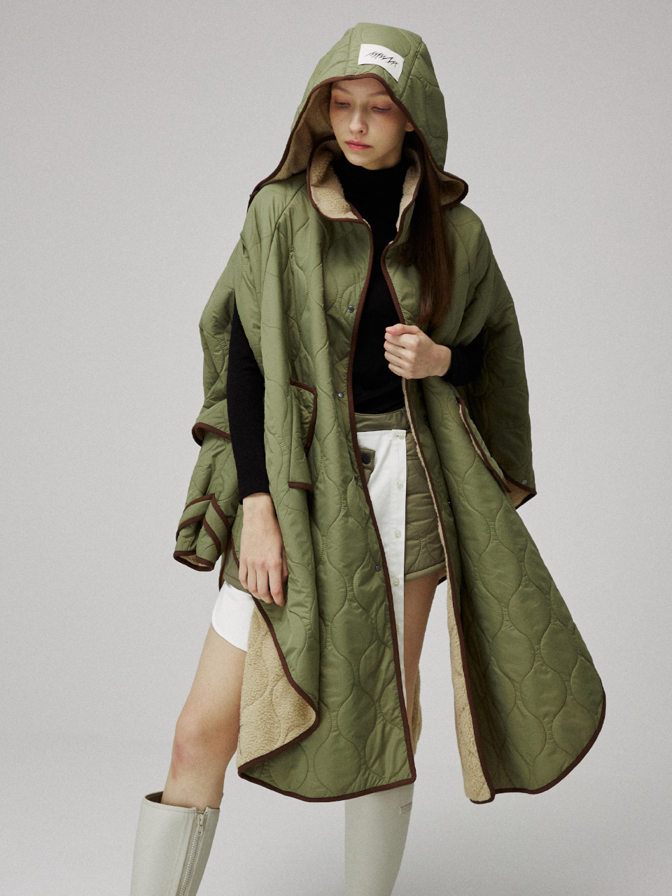 퀼팅 케이프 후드 코트입니다.