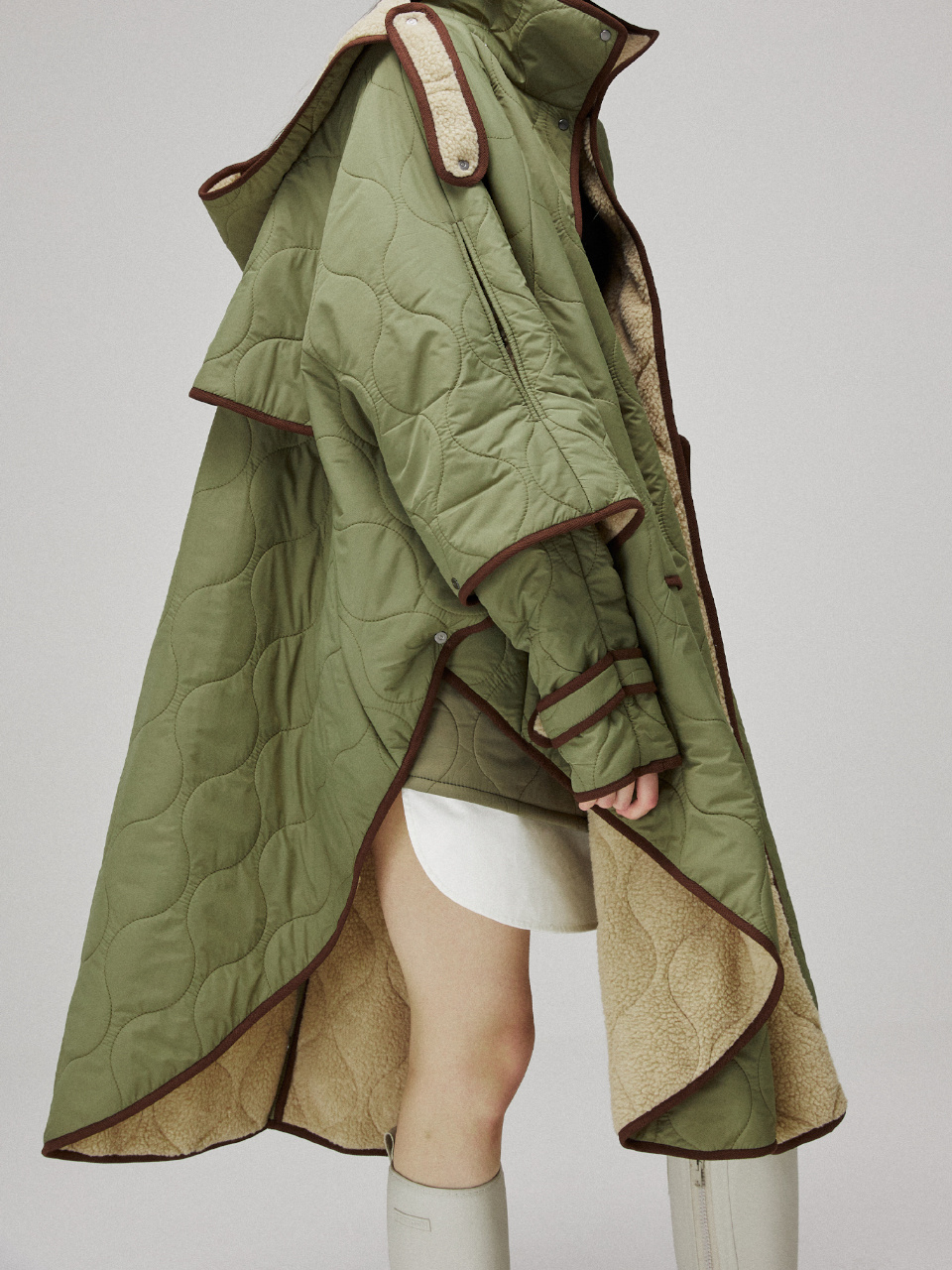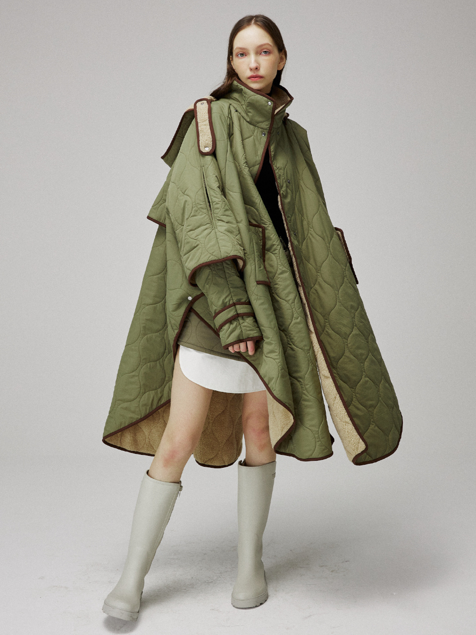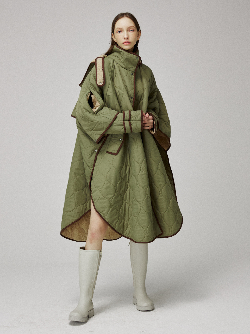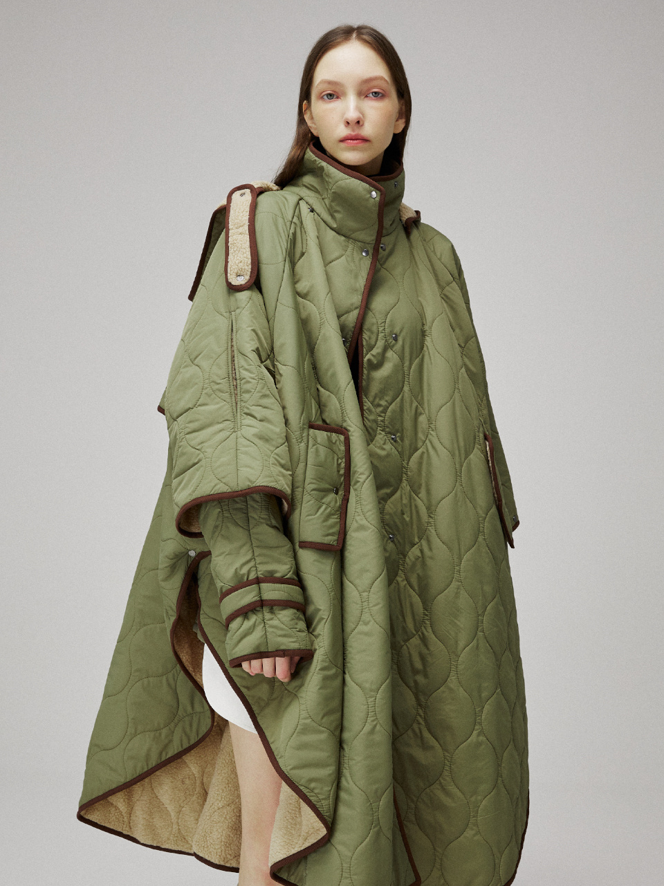 퀼팅 케이프 후드 코트입니다.