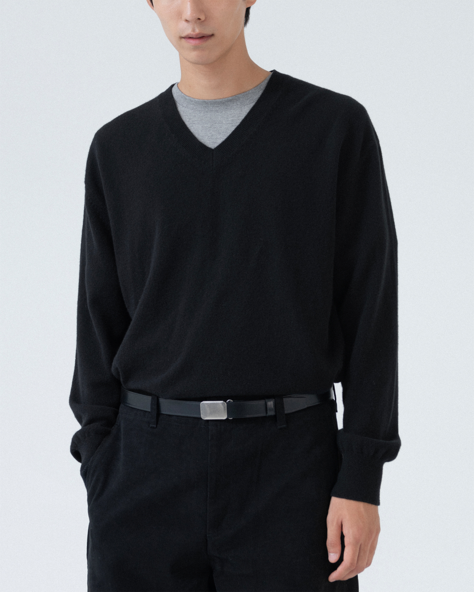 원사의 굵기가 아주 섬세하여 최고등급의 EXTRA SUPER FINE WOOL 원사를 사용하여 고급스러움을 더한 여유로운 실루엣의 V넥 니트 입니다.