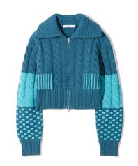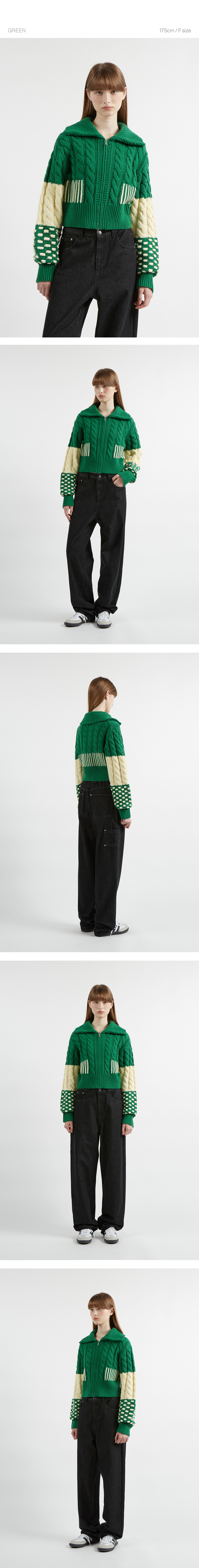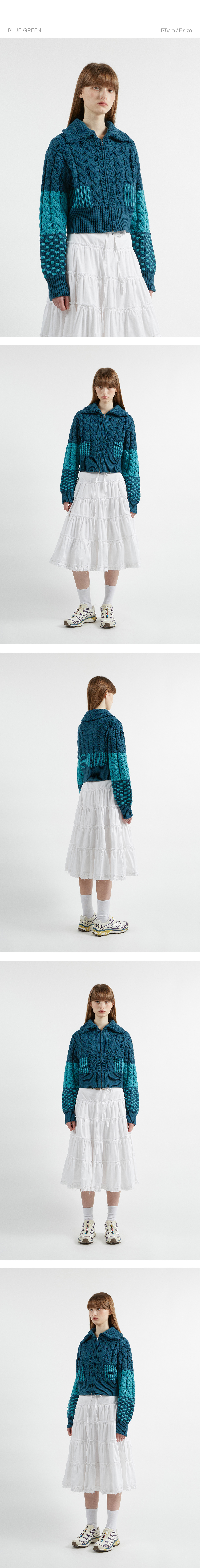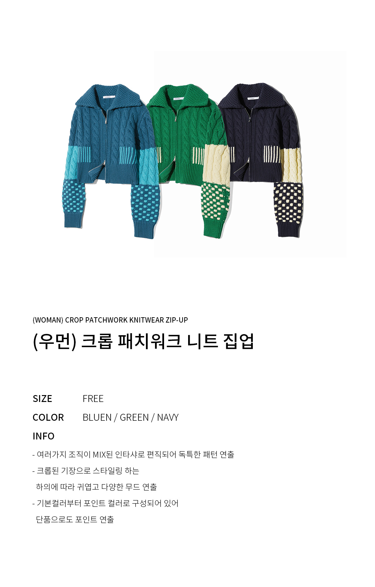 (우먼) 크롭 패치워크 니트 집업_블루그린