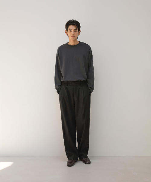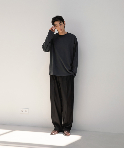 여유있는 와이드핏이지만 A/O. 특유의 퍼지지 않고 뚝 떨어지는 실루엣을 유지하기 위해
