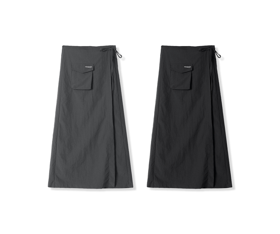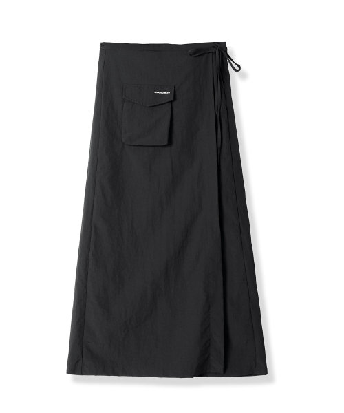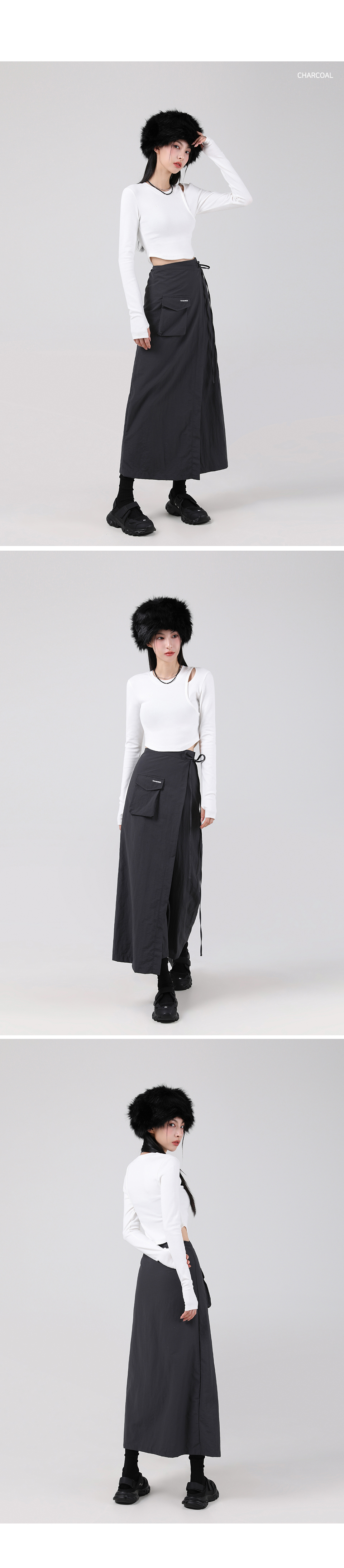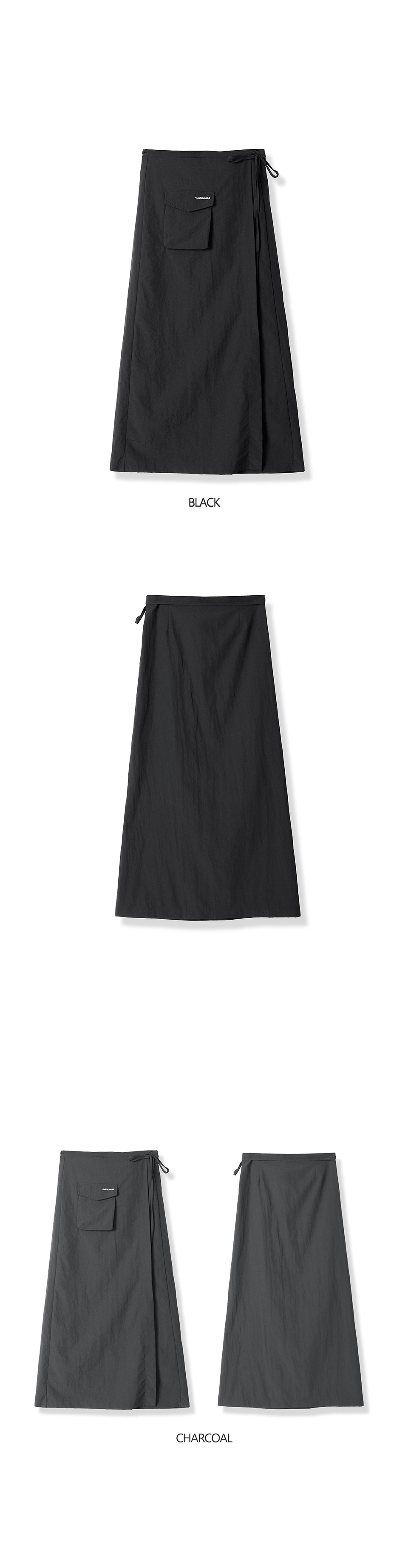 캉캉 프릴 플레어 리본 셔링 롱 코튼 스커트 [블랙]