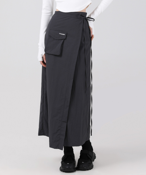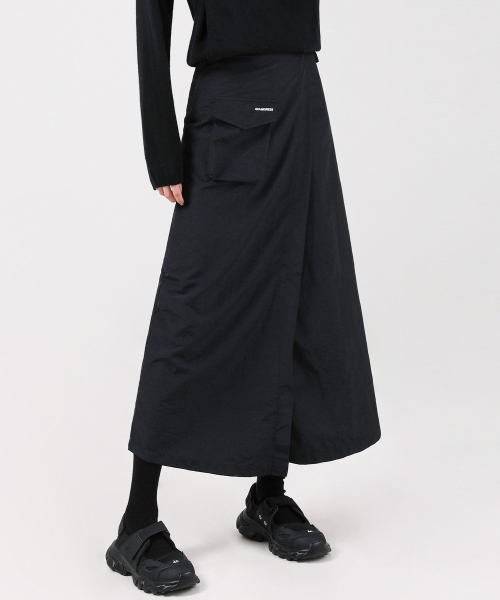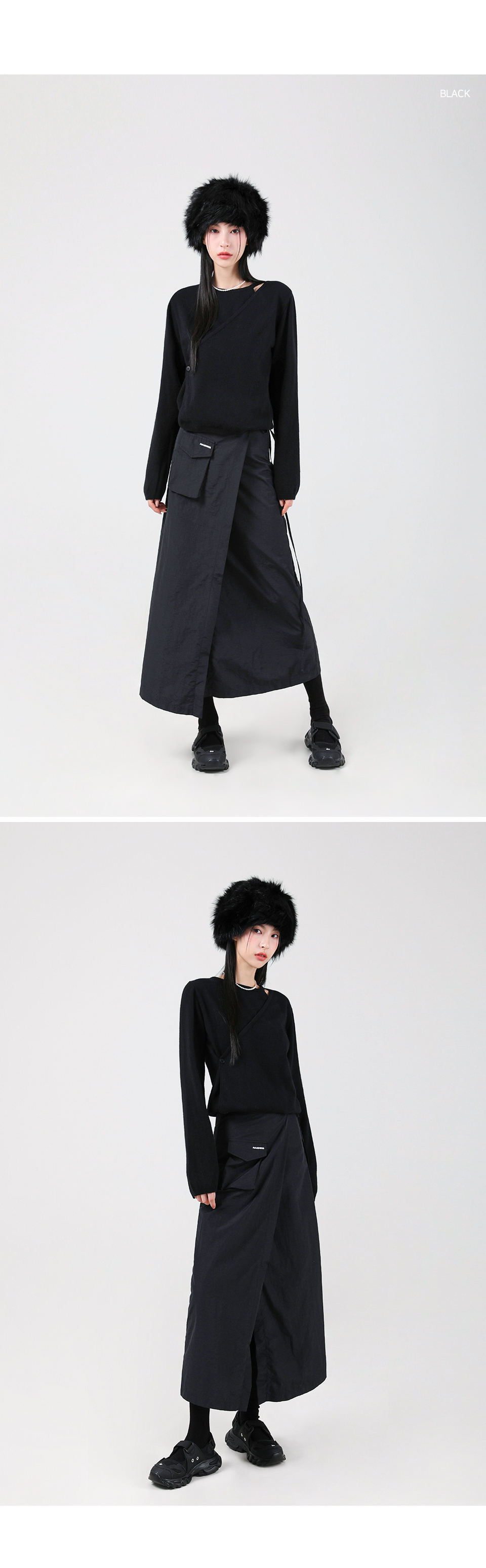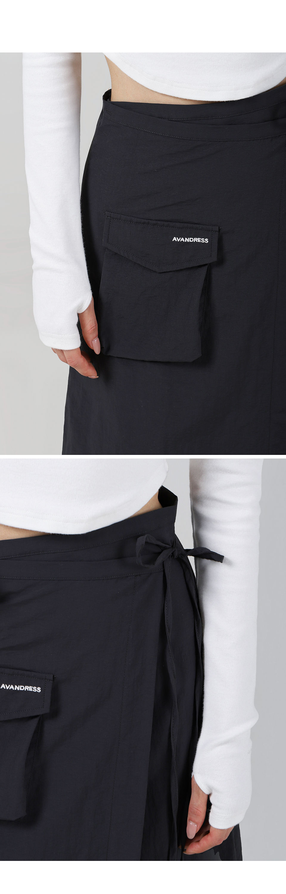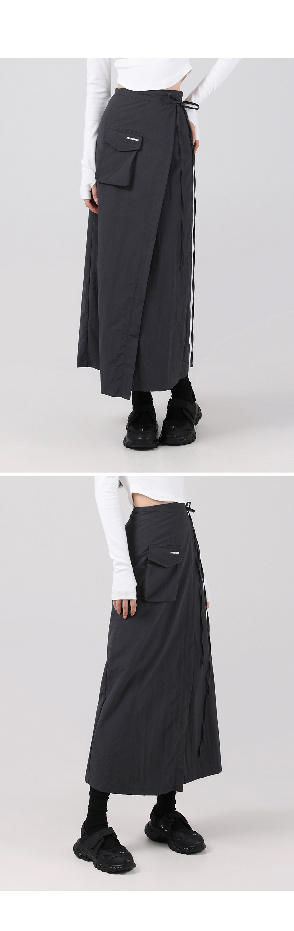 캉캉 프릴 플레어 리본 셔링 롱 코튼 스커트 [블랙]