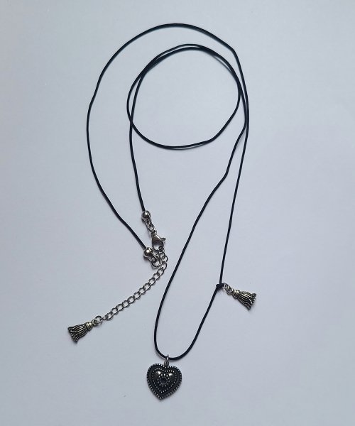 롬브리앙 빈티지한 매력의 하트 펜던트와 태슬 장식이 매력적인 롱 네크리스.