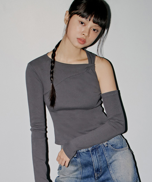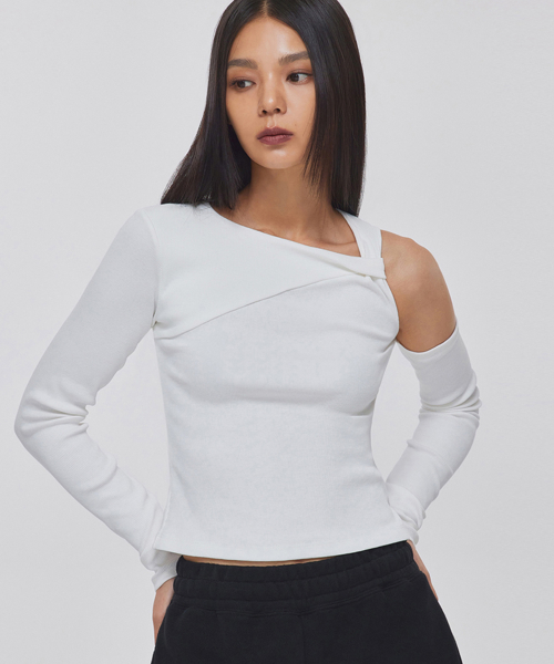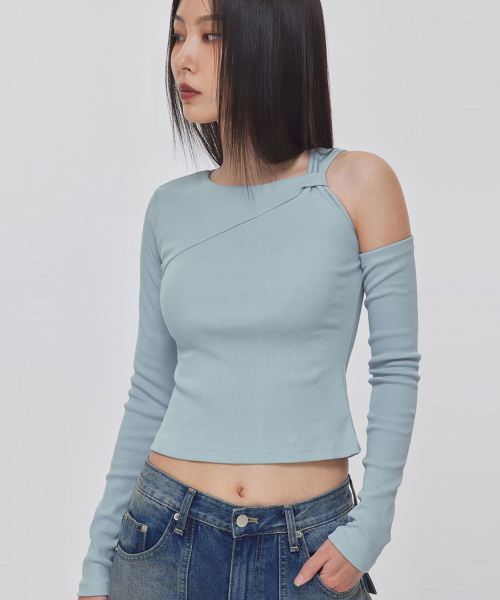 TWISTED DETAIL SHOULDER CUTOUT TOP_T326TP122