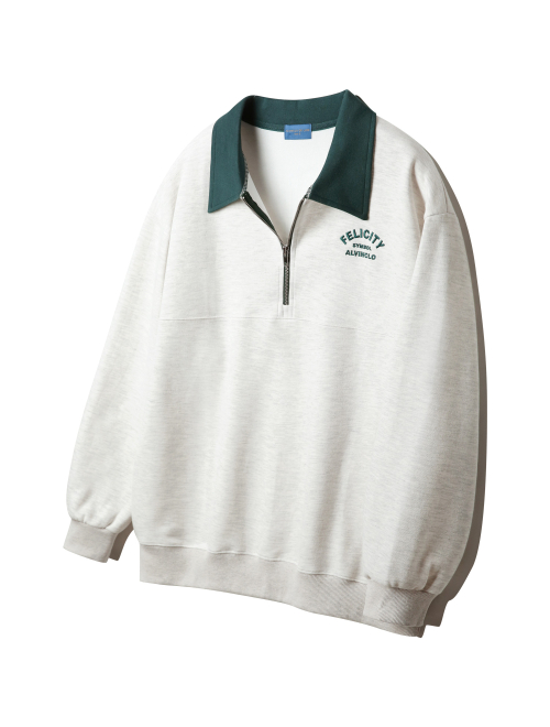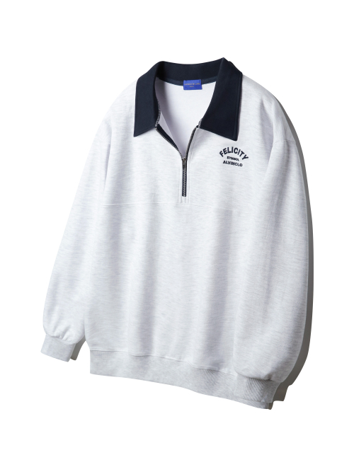 [DE LUXE] FELICITY 반집업 배색 카라 맨투맨 DLX7508 (4 COLOR)
