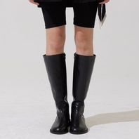 이멜 레더 라운드 롱 부츠 - 블랙